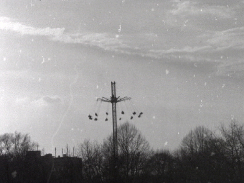 Shots of a funfair, partly filmed through the bald trees of a park nearby, create an alien atmosphere. The strangeness gets amplified, as the film material itself was worked on and by means of scratches, dust and limescales an own additional level was created.