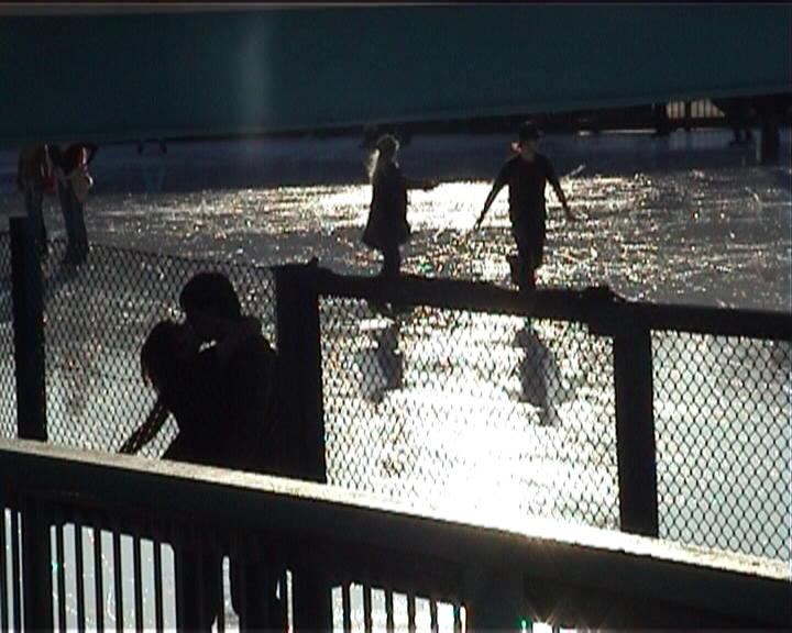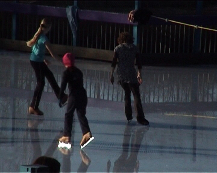 Der letzte Tag an dem die Eisbahn geöffnet ist. Nach einem langen Winter schmilzt das Eis und im Wasser spiegeln sich die Eisläufer. Von Virtuose bis Anfänger, vom Liebespaar bis zur Kunsteislaufschule sind alle nochmal da. Und alle laufen sie im Kreis bis es wieder Nacht wird.